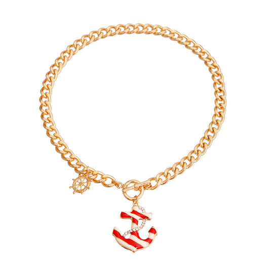 Sold outRed Stripe Anchor Charm Necklace