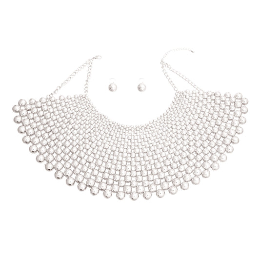 Silver Metallic Pearl Bib Necklace SetRegular price $ 52.99 USDRegular priceUnit price / per-