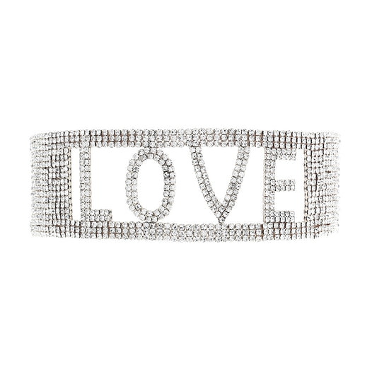 Sold out Sold outSilver LOVE 18 Row Rhinestone ChokerRegular price $ 25.99 USDRegular priceUnit price / per-