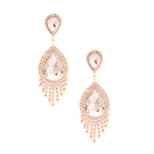 Clear Teardrop Fringe Earrings