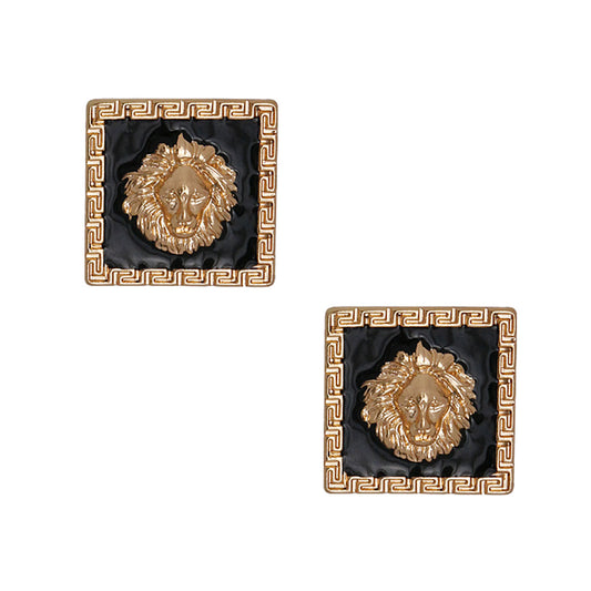 Sold outSquare Designer Black Lion Studs