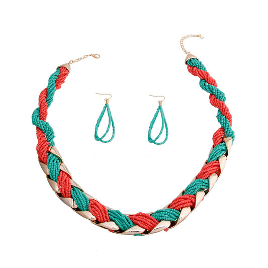 Turquoise and Multi Color Stone Bead Raised Collar Bib Necklace Set