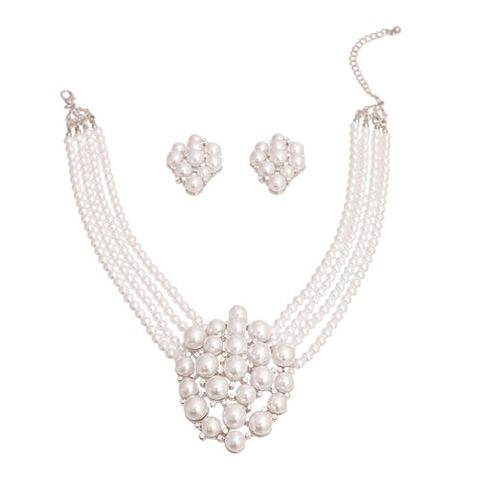 White 4 Line Cluster Pearl Necklace