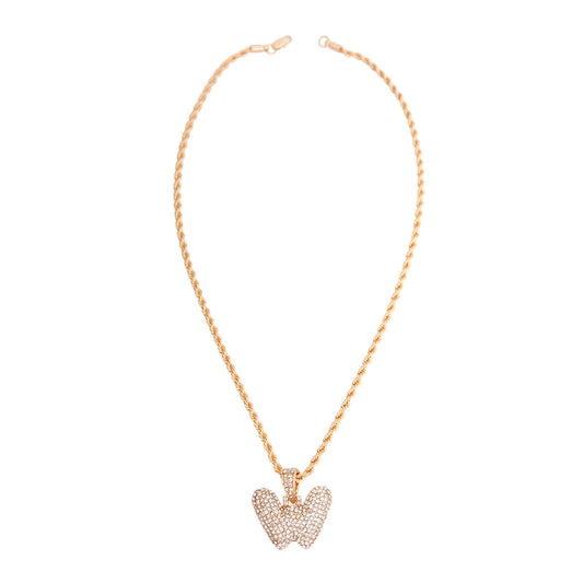 W Rhinestone Gold Necklace