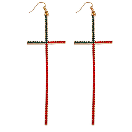 Designer Style Pave Rhinestone Cross Drop Earrings