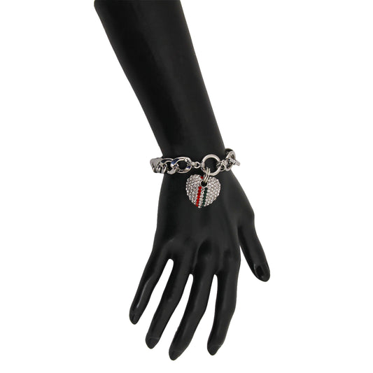 Designer Style Red and Green Rhinestone Striped Heart Toggle Bracelet