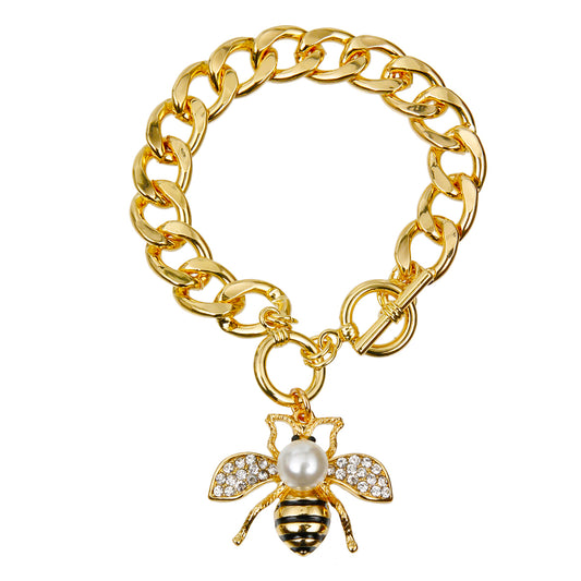 Designer Style Rhinestone Bee Toggle Bracelet with Pearl Detail