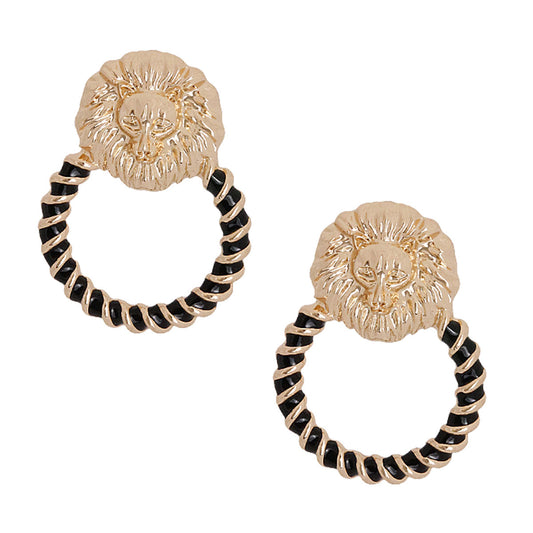 Sold outGold and Black Lion Head Ring Studs