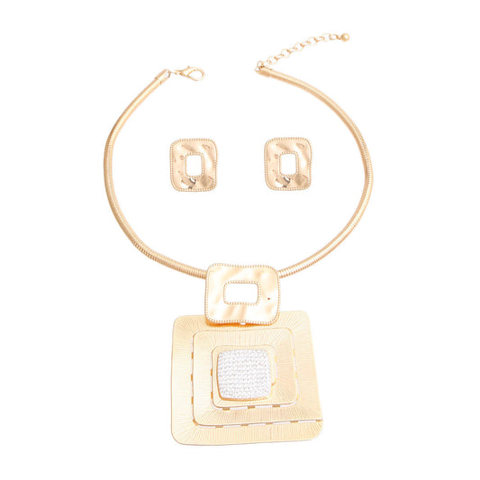 Sold outGold Square Rhinestone Pendant Set