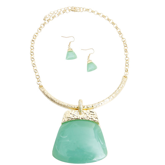 Handmade Embroidered Scarf Necklace Set with Chevron Pattern Yellow and Blue Beads