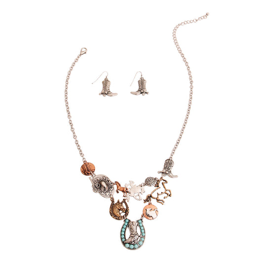 Handmade Teal Satin Scarf Necklace Set with Embroidered Sequins Beads and Pearls