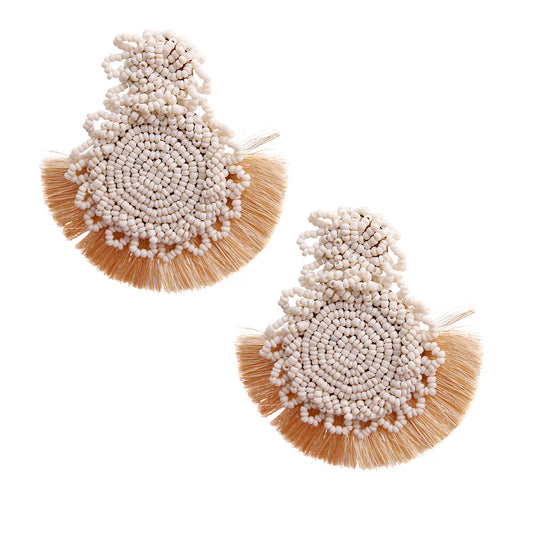 Ivory Seed Bead Mandala Earrings