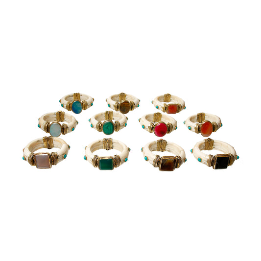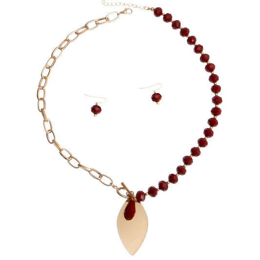 Brown Yellow and Red Bead Collar Long Bib Necklace Set with Cowrie Shell Detail