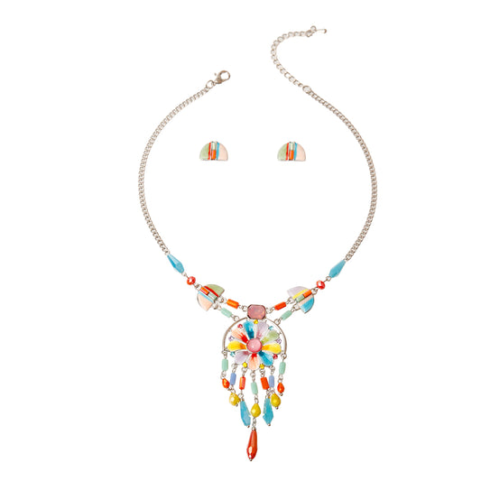 Multi Color Cowrie Shell Tribal Bib Necklace