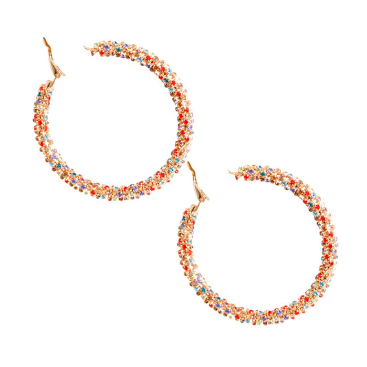 Multi Color with Black and White Bead Embroidered Bib Necklace Set