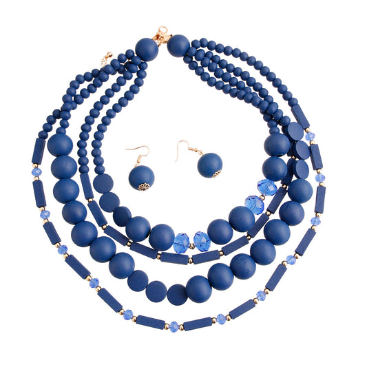 Sold outNavy Wooden Bead 4 Strand Necklace