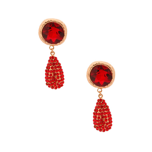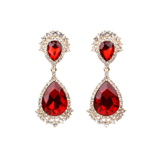 Red Crystal Rhinestone Teardrop Clip Ons
